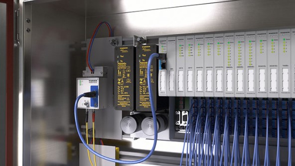 Het excom systeem voor externe I/O van TURCK voor ATEX Zone 1 verzendt signalen van intrinsiek veilige sensoren en actuatoren in Zone 0 en 1 via ethernet naar de hogere controller. De communicatie tussen de niet-Ex- en Ex-gebieden verloopt via glasvezel met behulp van TURCK's mediaconverters FOCEN11Ex-2G en FOCEN11-3G – over afstanden tot 2500 m. Vanaf dit punt kunnen meerdere excom stations worden geïntegreerd met behulp van de GEN-2G Ethernet Gateway via koperkabels en communiceren via PROFINET, EtherNet/IP of Modbus TCP.
