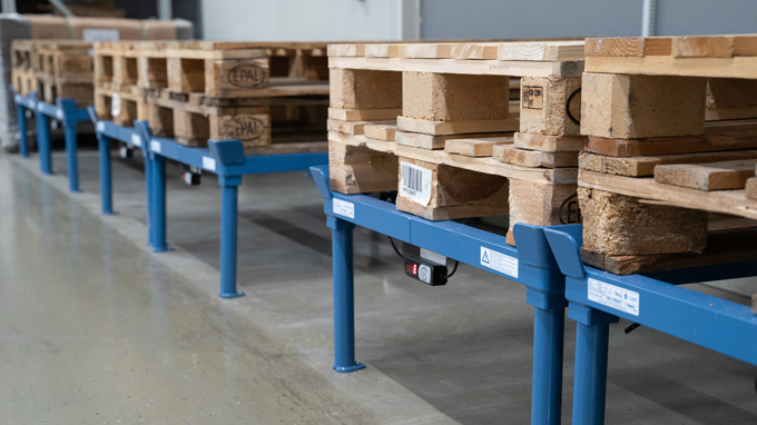 Medewerkers starten een bewerking door het serienummer van een apparaat in te scannen. Het bijbehorende SAP-werkplan verschijnt automatisch op de beeldschermen, een typeplaatje wordt eveneens automatisch afgedrukt en de materiaallijst wordt opgeroepen. Terwijl de monitoren geïllustreerde instructies tonen, geeft een PTL110 module de weg aan naar het overeenkomstige afnamepunt. In dit geval licht hij groen op met een kortstondig geel knipperlicht zodra de pick via de capacitieve aanraaktoets wordt bevestigd. In de laadzone, waar de pallets op lage staanders worden geplaatst en de PTL-apparaten dus niet op hoofdhoogte zijn gemonteerd, vinden andere processen plaats. "We kwamen op het idee door het feit dat de achterkleppen van verschillende auto's met een voetbeweging kunnen worden geopend," herinnert Hannesen zich. De KEB-ingenieurs kozen daarom voor PTL-modules met contactloze detectie voor de inzamelpunten. Medewerkers leggen de pakketten nu voorzichtig met beide handen neer en hoeven alleen nog maar een voet onder de optische sensor te plaatsen als bevestiging.