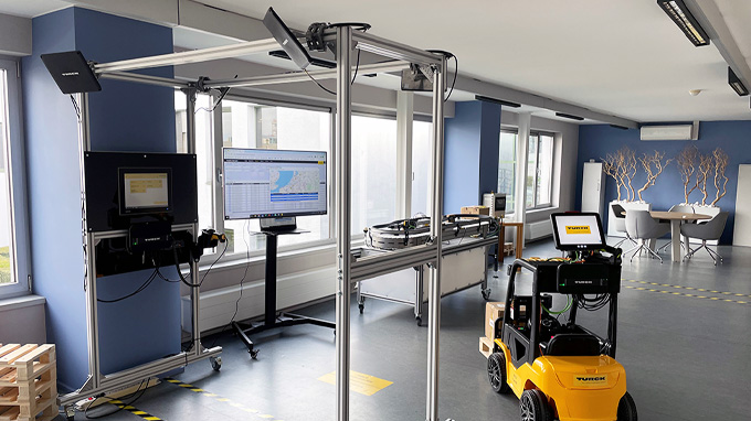 Een op afstand bedienbare mini-heftruck is met een complete Turck Vilant RFID-configuratie (reader, antenne, barcodescanner, client software) uitgerust. Wanneer deze een pallet verplaatst wordt eerst de RFID-tag van de aanwezige producten geregistreerd. Wanneer de heftruck dan door de verschillende zones rijdt, leest deze de tags die in de vloer zijn verwerkt. Via de universele Turck Vilant Client-software wordt deze info naar de Cloud Visibility Manager gestuurd. Zo worden alle bewegingen, alsmede de doellocatie van de lading geregistreerd.