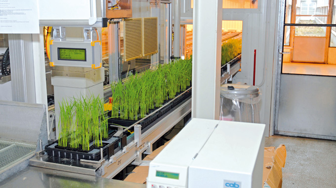 Wetenschappers van Bayer CropScience AG testen nieuwe actieve componenten op hun geschiktheid als landbouwbestrijdingsmiddel door ze in een geautomatiseerd systeem op planten te spuiten. Het RFID-systeem BL ident van Turck garandeert transparantie en een duidelijke identificatie van elke plant.