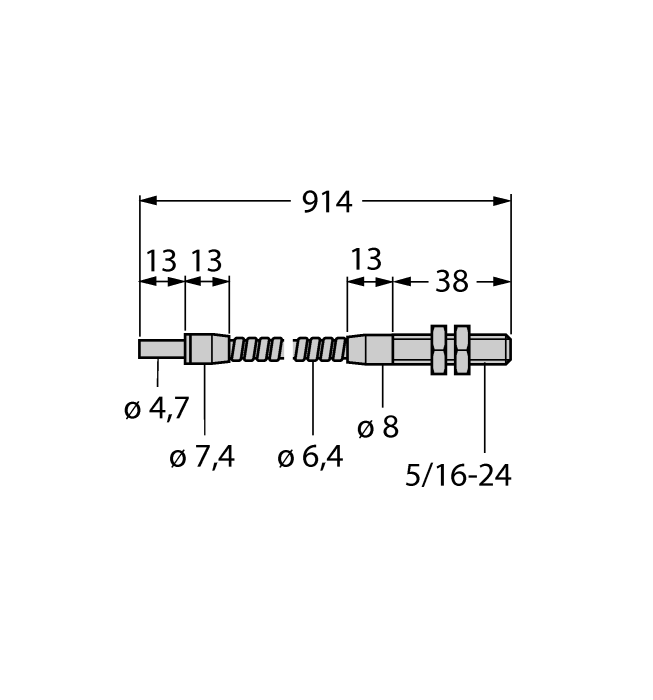 Glasvezelkabel, bedrijfsmodus: retro-reflectief of zender-ontvanger, messing schroefdraadhuls, bundeldiameter 3,2 mm, flexibele roestvaststalen mantel, voor omgevingstemperaturen -140 °C…+250 °C |