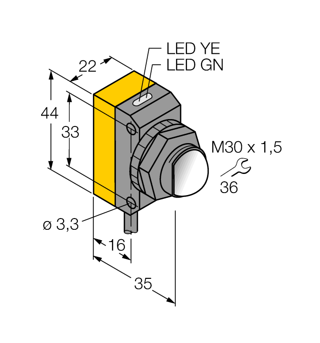 | Bouwgrootte | 35 x 22 x 49 mm, QS30 |